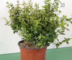 Descrizione Abelia Rupestris var. Grandiflora – Arbusto da fiore che a fine estate produce una ricca e prolungata fioritura bianca. L’Abelia Grandiflora viene utilizzata da sola o in gruppo per realizzare angoli fioriti, bordure, oppure piccole aiuole e terrazzamenti. Pianta tappezzante dal portamento tondeggiante, ha piccole foglie lucide, ovali e dentellate, di colore verde scuro, che permangono sulla pianta tutto l’anno, anche se nei mesi più freddi l’Abelia Glandiflora perde una parte del suo fogliame. Fiorisce a fine estate con numerosi fiorellini bianchi a trombetta, che colorano la pianta di bianco, specialmente se è esposta a pieno sole. L’Abelia Grandiflora è una pianta versatile, facile da curare, rustica soprattutto per quanto riguarda le malattie, da cui difficilmente viene colpita. Vive bene anche nei terreni più poveri, deve essere innaffiata nei periodi siccitosi anche se non sopporta molto i ristagni idrici. E’ adatta anche all’uso quale pianta onamentale nelle aiuole, da sola o con altri arbusti, ma viene coltivata benissimo anche in vaso o nelle fioriere, dove può vivere anche per un lungo periodo.