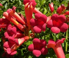 Descrizione Bignonia – Pianta molto vigorosa e dalla crescita rapida, con radici avventizie che dipartono dal fusto, grazie alle quali la pianta si ancora ai supporti. Produce una ricca copertura fogliare costituita da foglie imparipennate di colore verde intenso. La fioritura cade tra la fine dell’ estate e l’inizio dell’ autunno. I fiori sono molto appariscenti, a forma di tromba e colore che varia a seconda della varietà, rosso, arancione, giallo.