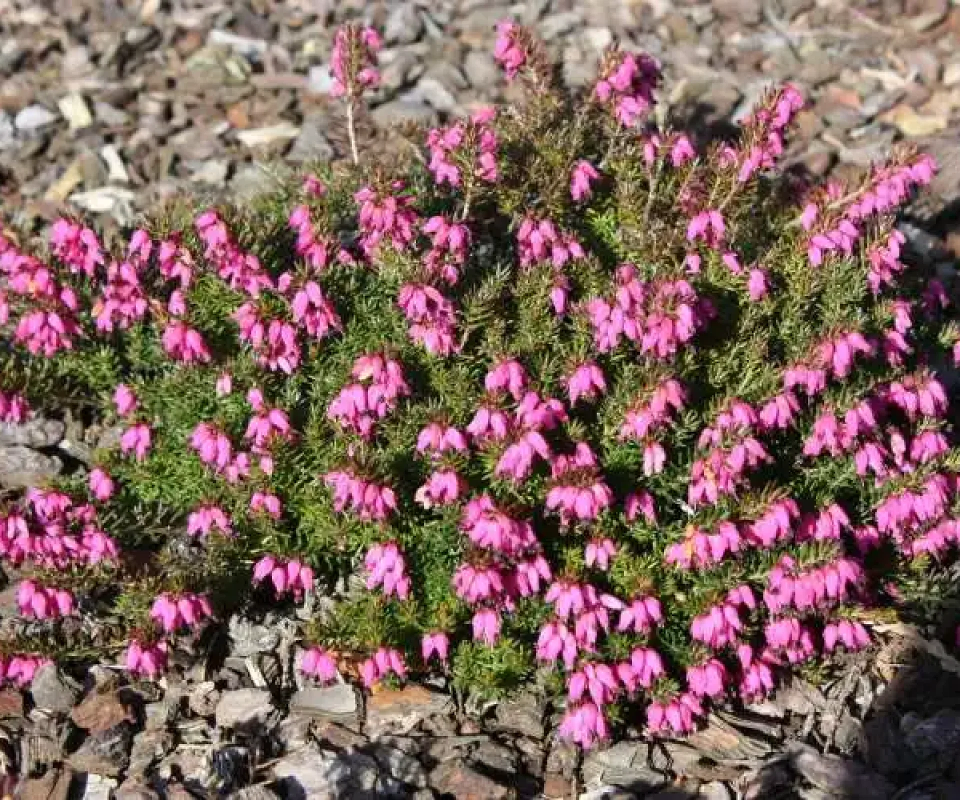 Descrizione: Arbusto sempreverde appartenente alla famiglia delle Ericaceae. Portamento prostrato, cespuglioso. Raggiunge i 40 cm di altezza. Foglie aghiformi strette e corte, rigide di color verde vivo ma anche giallo-bronzeo. Fiori riuniti in grappoli apicali di color rosa magenta. Adatto a roccioso, aiuole e contenitore.
