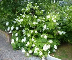 Descrizione; Arbusto dal portamento elegante, vigoroso ma raffinato. Foglie larghe, lobate che passano dal verde brillante ad un rosso porpora in autunno. A luglio fiorisce in panicoli sterili ben eretti bianco neve per poi assumere colorazioni rosso-rosate a cui si alternano fiori fertili verde e crema.
